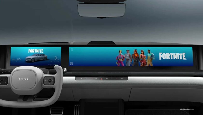 Внешний дизайн Afeela выполнен по уже классическим “электрокаровским” канонам с обтекаемыми формами для лучшей аэродинамики. Из оригинальных решений можно выделить два экрана (спереди и сзади) расположенные между оптикой.