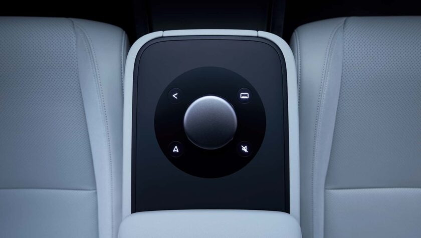 В салоне во всю ширину передней панели установлен большой горизонтальный экран объединяющий приборную панель и мультимедийную систему, а по бокам на одном уровне расположены еще два дисплея дублирующие картинку с боковых зеркал.