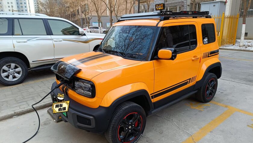 Несмотря на скромные размеры (длина 3381 мм) Baojun Yep имел грозный внешний вид в стиле рамных внедорожников, особенно параллель напрашивается с Suzuki Jimni. Но по конструкции это лишь электрический микрокар с приводом на заднюю ось и скромным клиренсом 150 мм.
