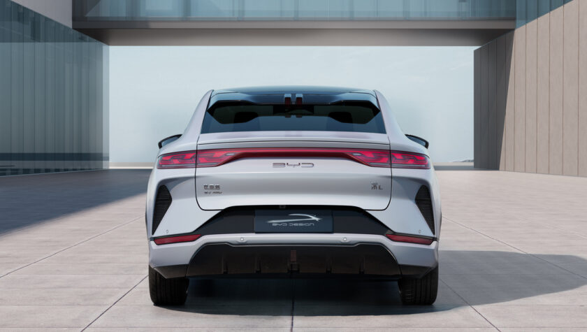 Основная стилистика экстерьера не пострадала, дверные ручки остались выдвижными, колесные диски сохранили красивый «звездный» дизайн, а профиль авто вкупе с небольшим клиренсом по-прежнему делает авто похожим на кросс-лифтбек. Его высота составила всего 1560 мм., притом что в длину BYD Song L имеет 4840 мм, а колесная база авто составляет внушительные 2930 мм.
