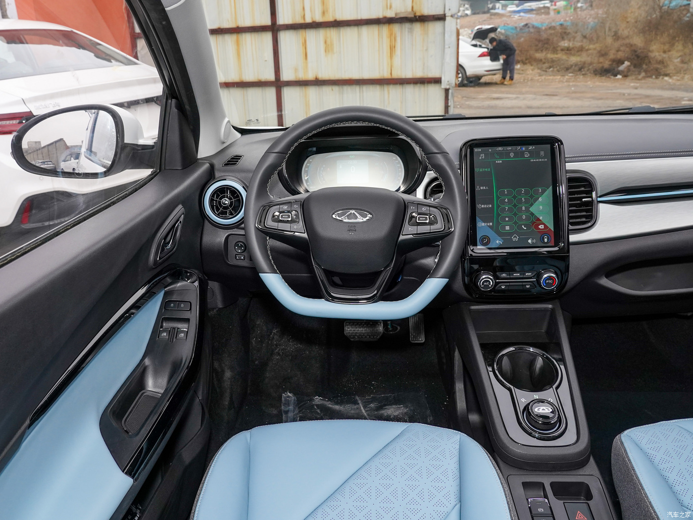 Двухдверка Chery EQ1 имеет скромные габариты (3242x1670x1550 мм.), но в условиях городского использования это окажется только плюсом. У нее симпатичный «игрушечный» внешний дизайн с крупными фарами и крышей (черной или белой независимо от основного цвета кузова), нависающей над задним стеклом небольшим спойлером. В КНР модель продается в нескольких вариантах обвеса и с выбором колесных дисков, причем есть варианты и со штамповками, окрашенными в «электрический» голубой цвет.