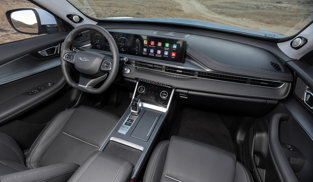 Этот гибрид создан на базе более крупного Tiggo 8 Pro Max. У него радиаторная решетка со светящимся логотипом, измененные задние LED-фонари и T-образный стоп-сигнал. По оснащению салона кроссоверы отличаются больше, в частности, компоновкой центрального тоннеля и двойным моноэкраном, имеющим изогнутую форму. «Техника» здесь такая же, как у гибридной «семерки», правда, электрический запас хода составляет 80 км., а разгон до сотни занимает 7, 5 секунды. Трио двигателей в сумме дает 235 л. с. а при полной заправке и зарядке этот гибридный кроссовер может преодолевать более 1000 километров.