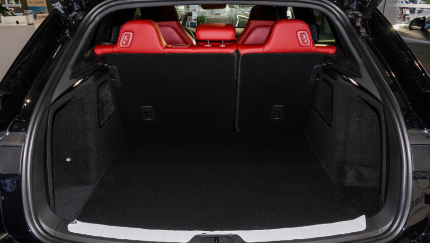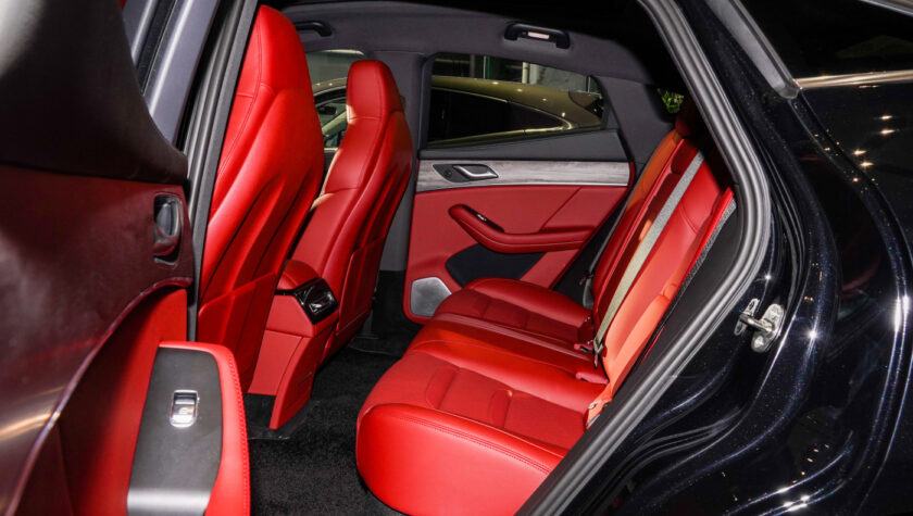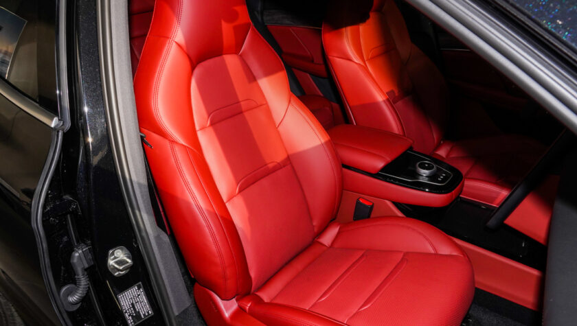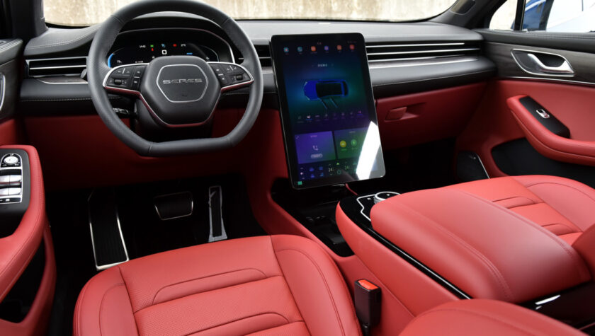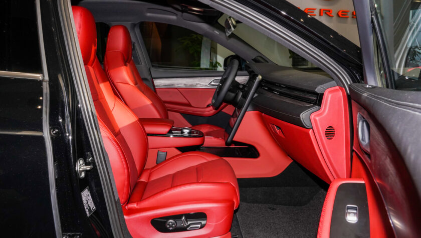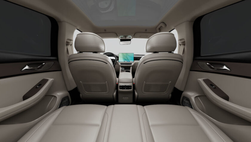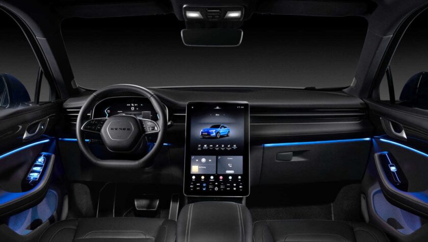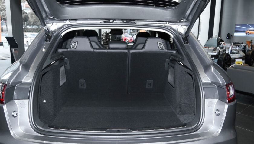 Дополняет их проекционный HUD-дисплей, способный отображать важные данные на ветровое стекло. В темное время суток в салоне будет выигрышно смотреться амбиентная подсветка с выбором из 64 цветов. Передние кресла электрокроссовера отделаны экокожей, имеют электроприводы, подогревы, массаж и вентиляцию.
