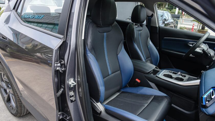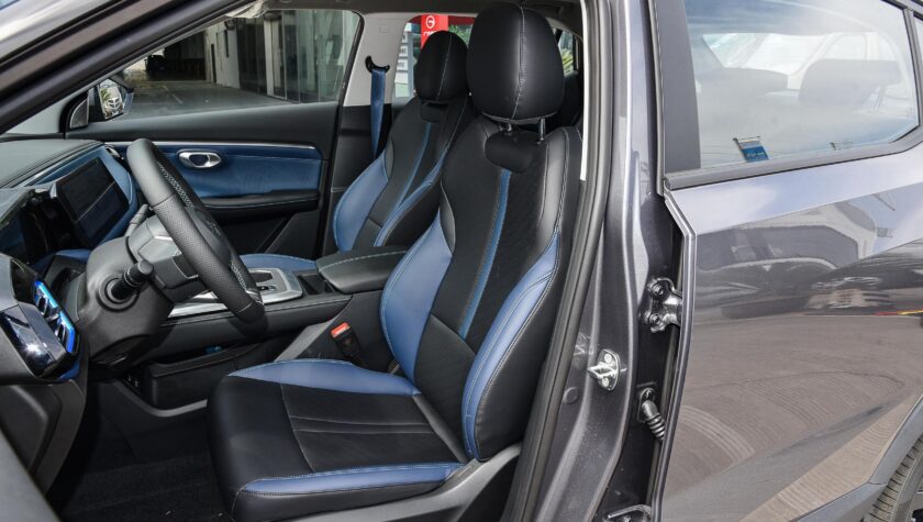 В салоне модная передняя панель с большим горизонтальным экраном без козырька в который интегрирована виртуальная приборная панель и информационно-развлекательный комплекс.