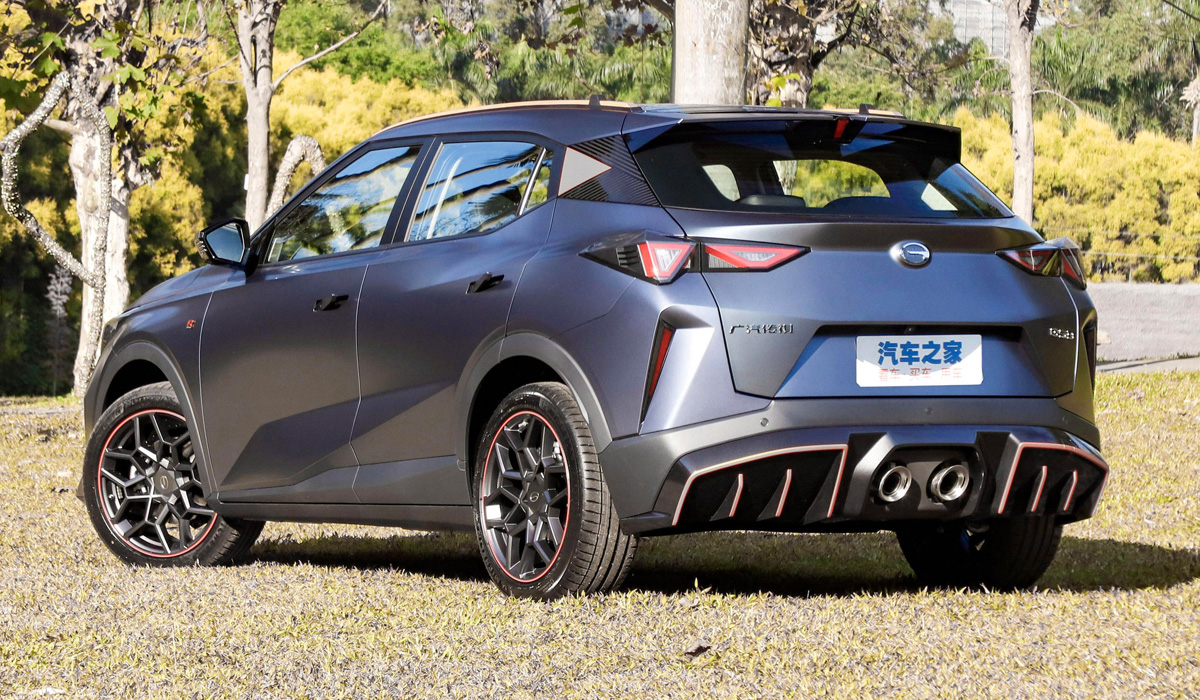 Внешность GAC GS3 довольно вызывающая с острыми гранями, прямыми линиями и полностью светодиодной оптикой. Помимо стандартной версии также есть пакет R-Style (фото снизу) со спортивным обвесом отличающийся главным образом задним агрессивным бампером с двумя патрубками выхлопной трубы по центру.