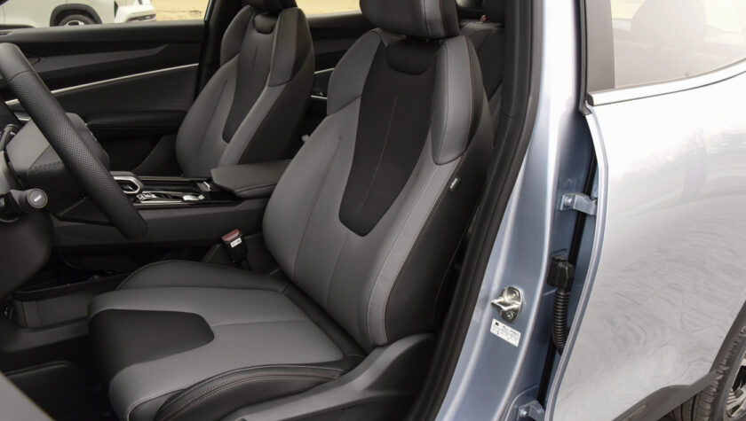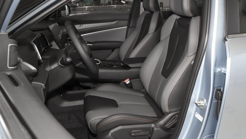 Рычаг КПП имеет вид джойстика и располагается на центральной надстройке. Рядом с ним – два подстаканника и площадка беспроводной зарядки для двух смартфонов. Интерьер также радует мелочами, например, интересной атмосферной подсветкой или рычажками электростеклоподъемников, располагающихся на дверных картах. Дизайн с двухцветной кожаной отделкой выглядит броско, а добавляют ощущения комфорта эргономичные кресла с «пухлыми» валиками и достойным набором электрорегулировок.