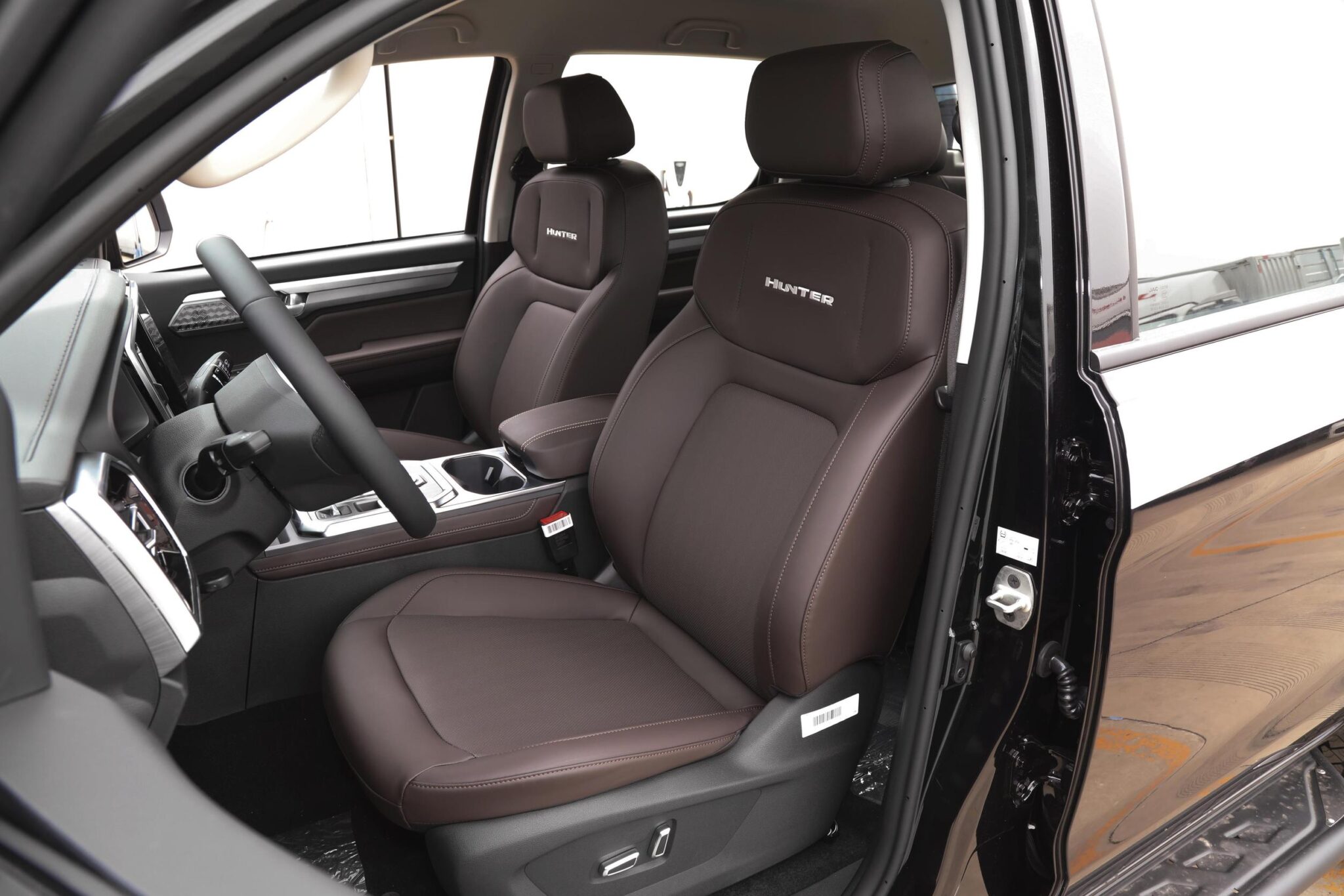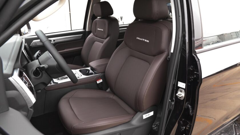 Однако у флагмана по бокам центрального монитора располагаются «уши» вертикальных воздуховодов, плюс заметно более широкой является центральная надстройка, на которой помимо рычага КПП собрано несколько блоков клавиш. Известно, что в дорогих версиях оснащения китайский пикап будет иметь кожаную отделку салона, систему климат-контроля, камеры кругового обзора, парковочные датчики, электрорегулировки передних кресел и «теплые» опции.