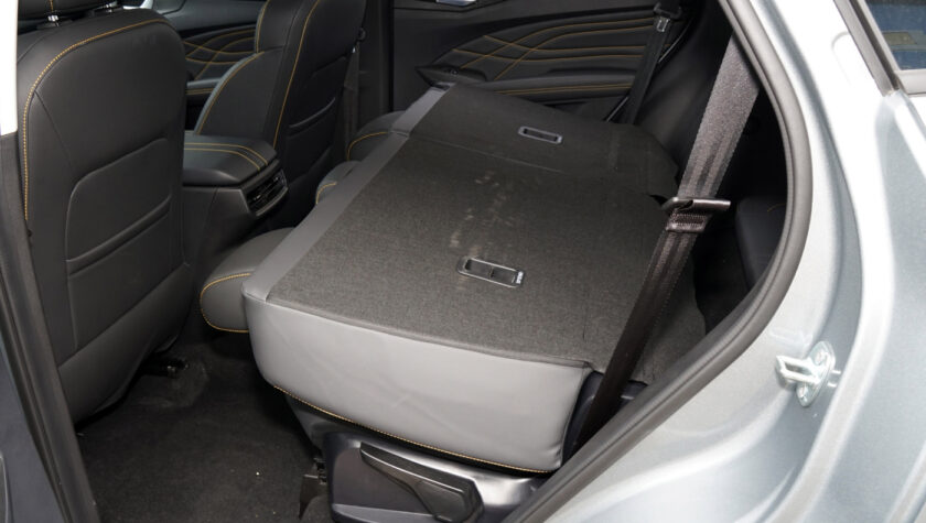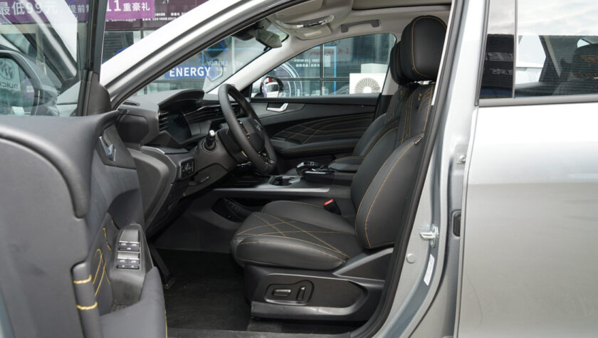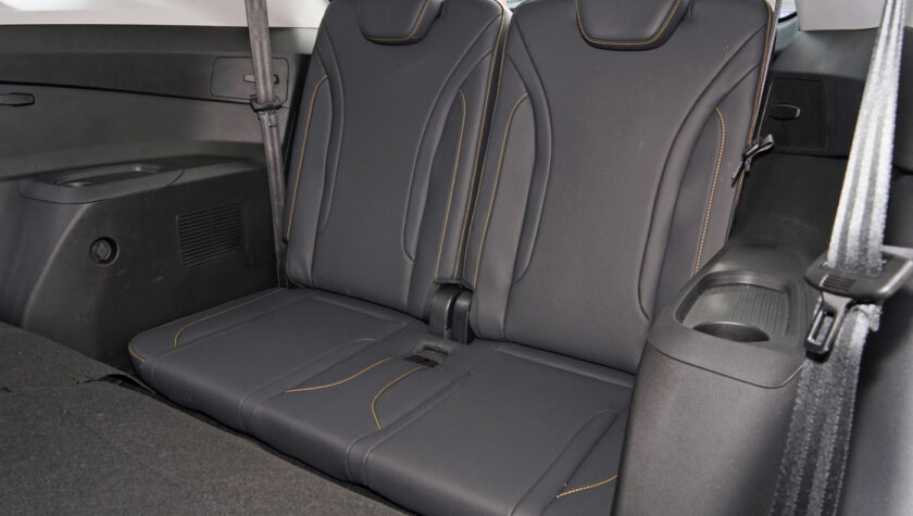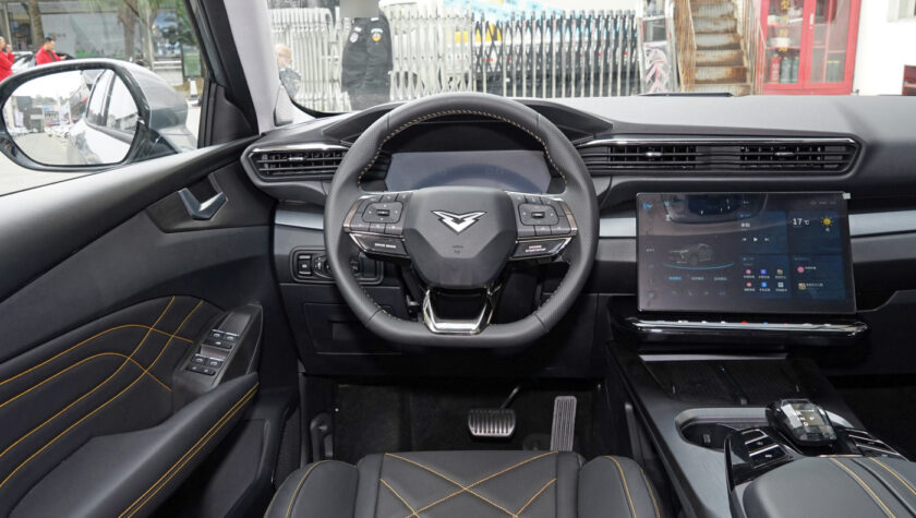 В нижней части дисплея находится панель с «горячими клавишами», а под ней органично вписались две площадки для беспроводной зарядки. Водительское место смотрится «космически», а еще больше такое ощущение усиливается при взгляде на блок управления трансмиссией, который располагается на выступе у центрального подлокотника. В китайском варианте авто может иметь два или три ряда сидений.