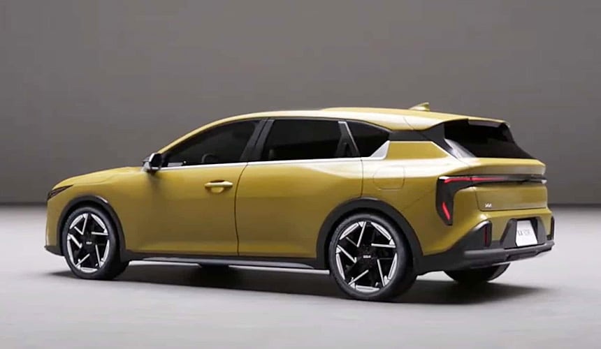 Интересно, что силуэт кузова Kia K4 2024 по типу больше напоминает фастбэк или лифтбэк, всё из-за ниспадающей формы крыши и (если внимательнее приглядеться) отсутствием боковых ручек задних дверей (они встроены в стойки кузова).