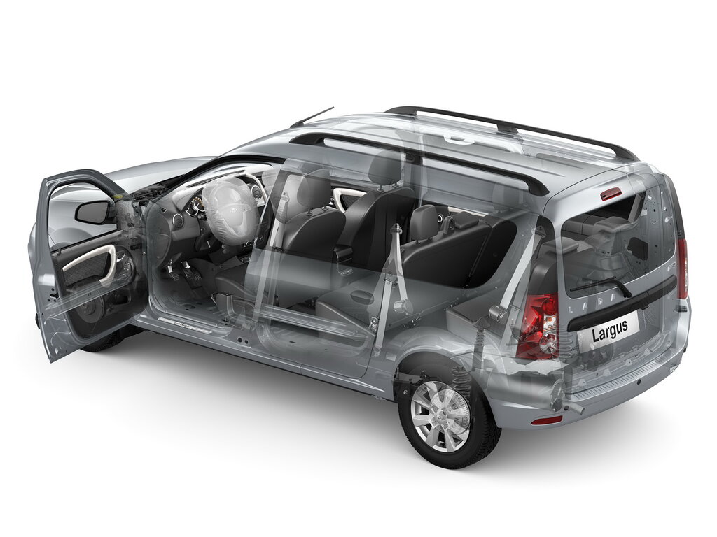 В попытках предложить удобную систему хранения вещей разработчики предусмотрели полку над вторым рядом сидений. А чтобы пассажирам этого автомобиля было комфортнее, на Lada Largus универсал появилась дополнительная шумоизоляция салона.