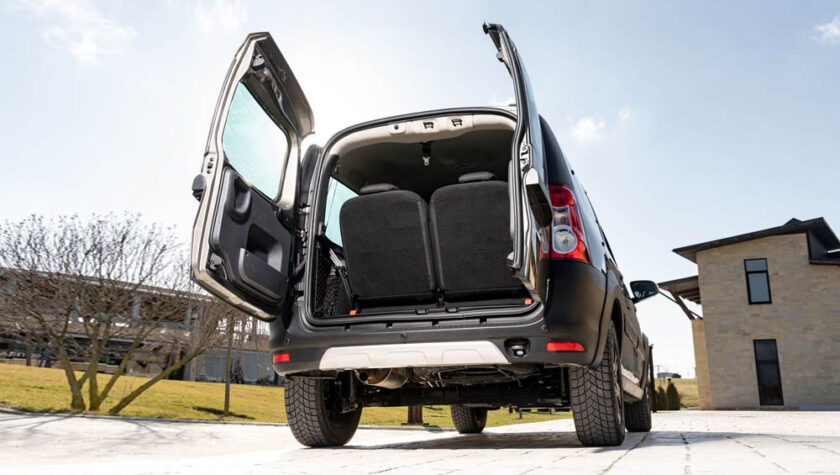 В коммерческий «каблучок» можно погрузить до 800 кг. груза, а полезный грузовой объем здесь составляет 2500 литров. Это 1020 мм. погрузочной ширины и 1850 мм. длины. Доступ в фургон осуществляется через задние распашные двери, фиксируемые в трех положениях, а также через распашную боковую, расположенную с пассажирской стороны.