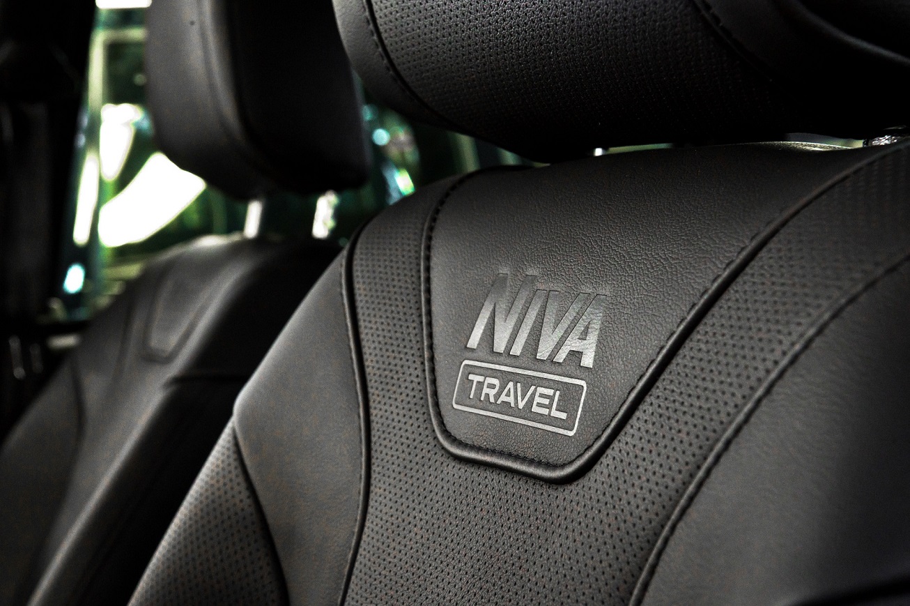 У Нивы Тревел из натуральной кожи обтянуты сидень, рулевое колесо и подлокотник. Также у передних кресел и заднего дивана, зона подголовника, спины и боковая секция выполнена из перфорированной кожи.