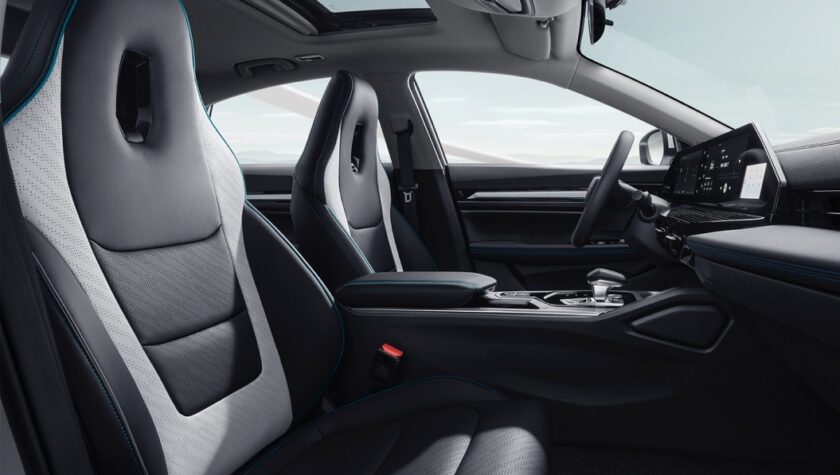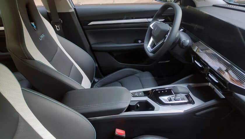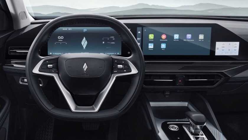В салоне у Livan S6 Pro модная нынче передняя панель с большим дисплеем без козырька, в который интегрированы дисплей медиасистемы, виртуальная приборная панель и небольшой экран для переднего пассажира.