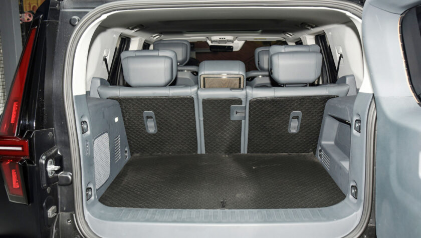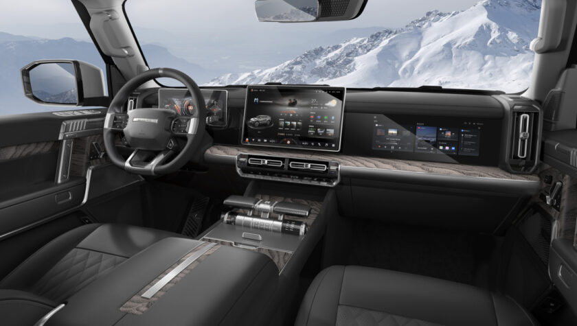 Причем, китайцы сумели подготовить не только электрическую, но и гибридную модификацию рамника. Авто собрало в себе самые передовые технологии, включая пневмоподвеску, позволяющую менять клиренс в диапазоне 221-326 мм., а также подруливающую заднюю ось, дающую возможность ехать «наискосок» в режим «crab mode».