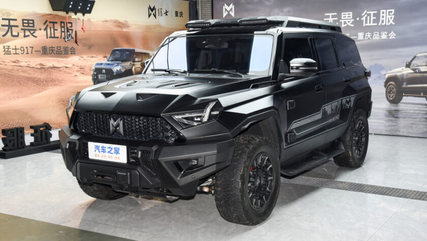 В Китае внедорожник продается под именем Mengshi M-Hero 917. Mengshi – это дочерний бренд концерна Dongfeng, а первый раз Mengshi начало использоваться еще в 2006 году, так называли “Китайский Хаммер”, который был легальной копией американского внедорожника и поставлялся в армию КНР.