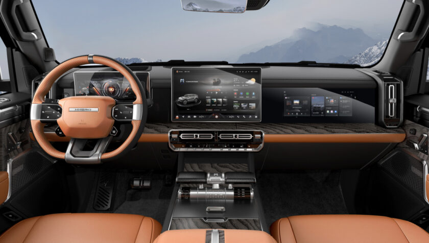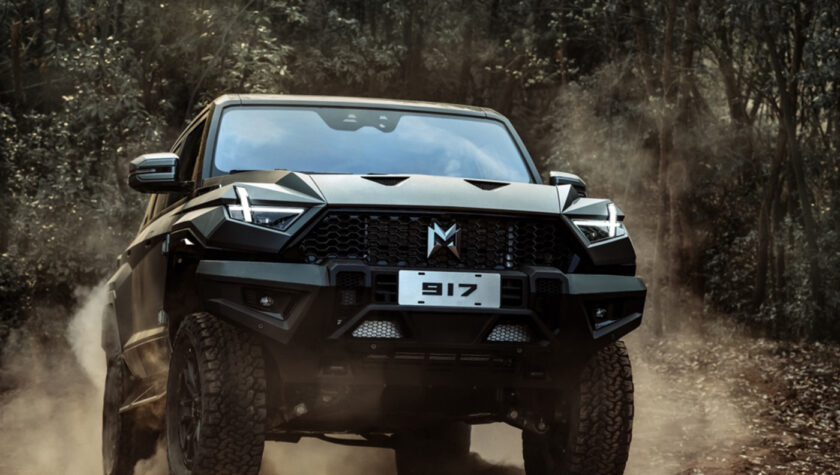 В Китае внедорожник продается под именем Mengshi M-Hero 917. Mengshi – это дочерний бренд концерна Dongfeng созданный для больших электрофицированных внедорожников в 2022 году. А первый раз название Mengshi начало использоваться еще в 2006 году, так называли “Китайский Хаммер”, который был вполне легальной копией американского внедорожника и поставлялся в армию КНР.