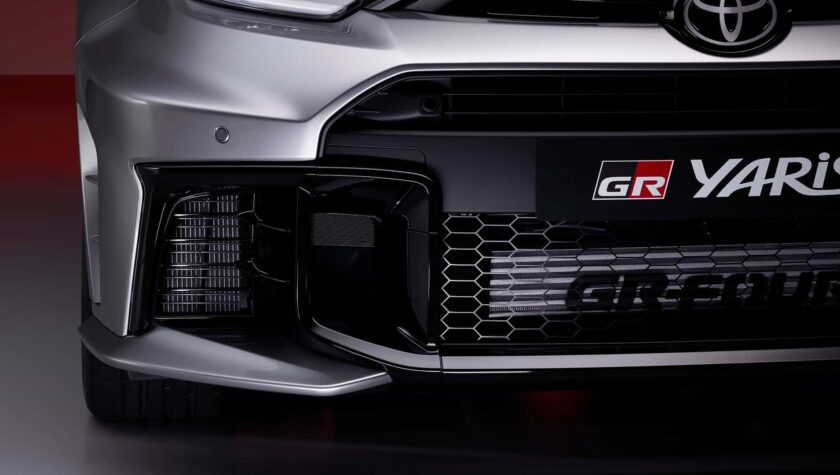 Экстерьер обновленного GR Yaris изменился в меньшей степени, но здесь тоже все ради функциональности. Спереди новый бампер состоящий из пяти частей (вместо монолитного), чтобы после ударов легче и дешевле было ремонтировать, а на радиаторе теперь выделяется надпись “GR-Four”. Оптика прежней формы, но обновлена внутренняя графика.