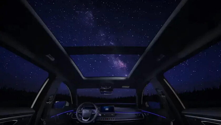 Пакет добавляет к базовому оснащению шторки безопасности, систему кругового обзора, панорамную крышу, датчик дождя, салонную многоцветную подсветку, беспроводную зарядку для гаджетов.